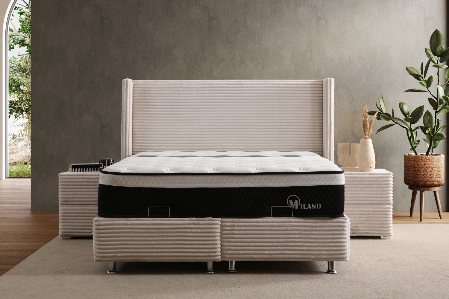 Découvrez le lit coffre Clara, une merveille d’élégance et de fonctionnalité ! Revêtu d’un somptueux velours côtelé, il allie style contemporain et praticité.
