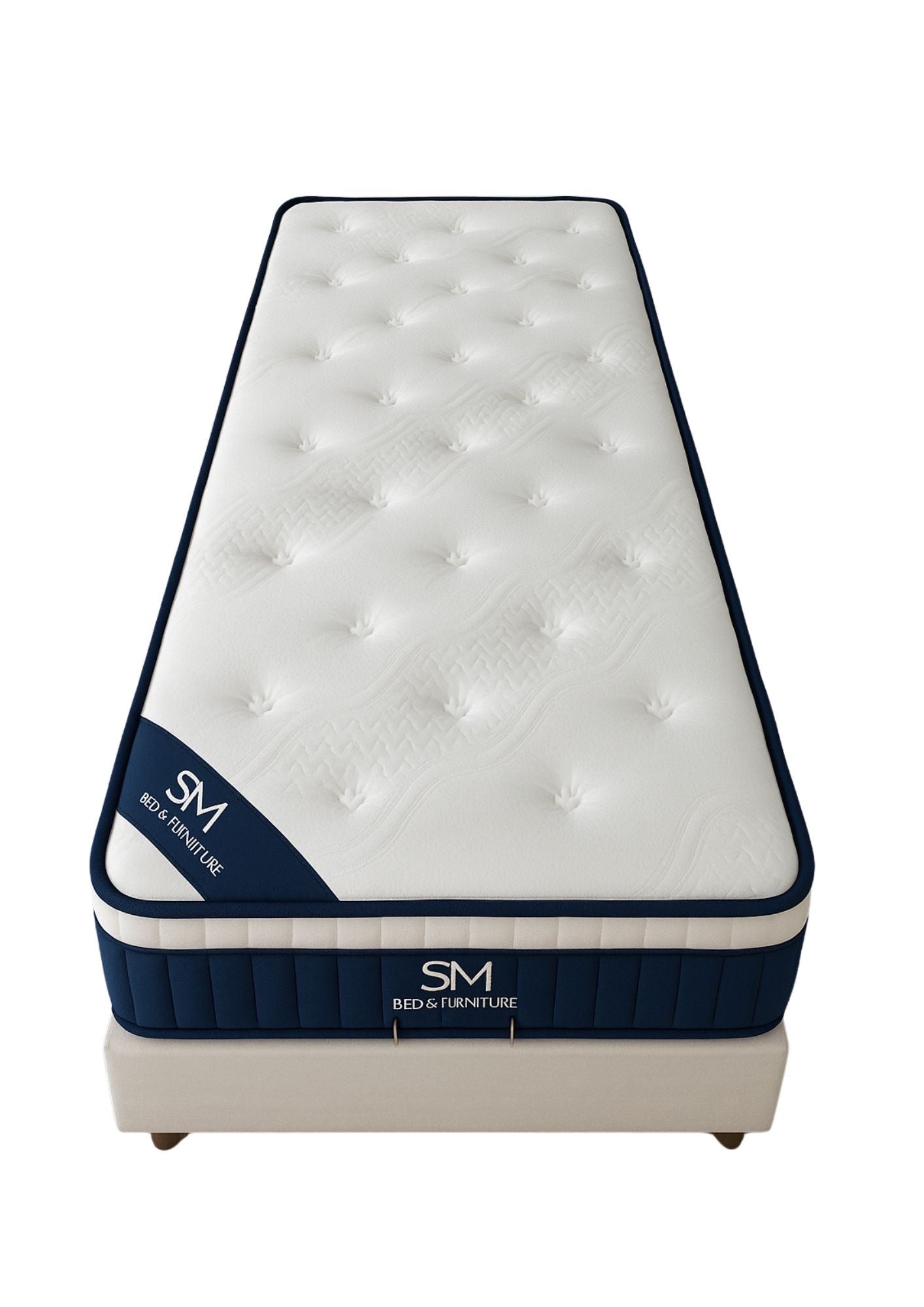 Son accueil doux et son soutien équilibré en font un matelas idéal pour un sommeil profond et confortable, quelle que soit votre position de couchage. Son plateau matelassé apporte une sensation de luxe et de bien-être dès les premières secondes, tandis que sa finition moderne et raffinée sublime votre chambre.